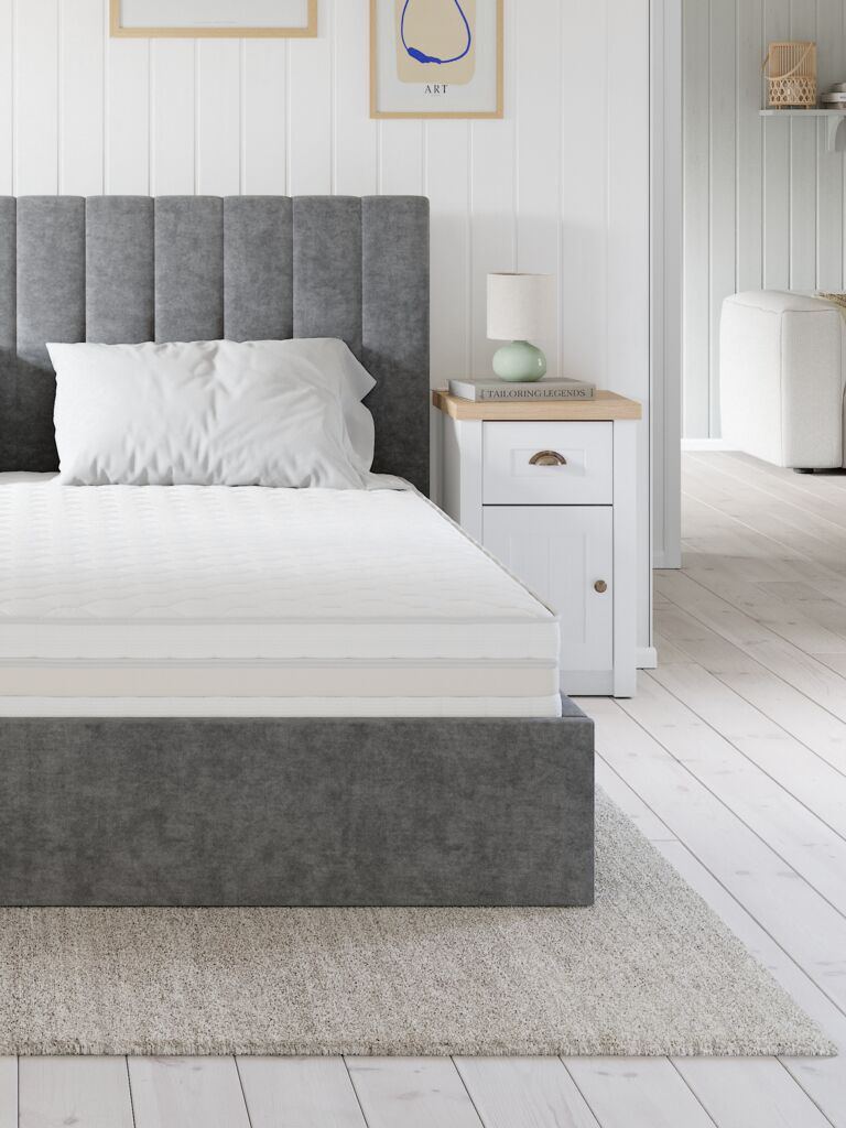 22 cm kalınlığında 267/m² paket yaylı, 7 konfor alanına bölünmüş 90x200 cm kaliteli yatak konforlu ve ergonomik olarak doğru bir destek sunar. Yatak poliether köpük ve vücut haatlarınıza tam olarak uyum sağlayan memory foam dolguludur. %100 polyesterden (%62 geri dönüştürülmüş) kalın kapitoneli yıkanabilir kılıf. Kılıf, yumuşatıcı aloe vera ile işlenmiştir.